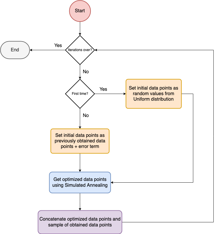 In each time step, the algorithm selects a solution closer to the current solution and would accept the new solution based on the quality of the solution and the temperature dependent acceptance probabilities.